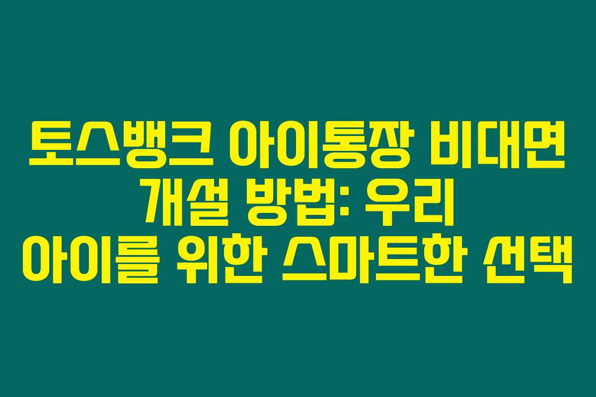 토스뱅크 아이통장 비대면 개설 방법: 우리 아이를 위한 스마트한 선택