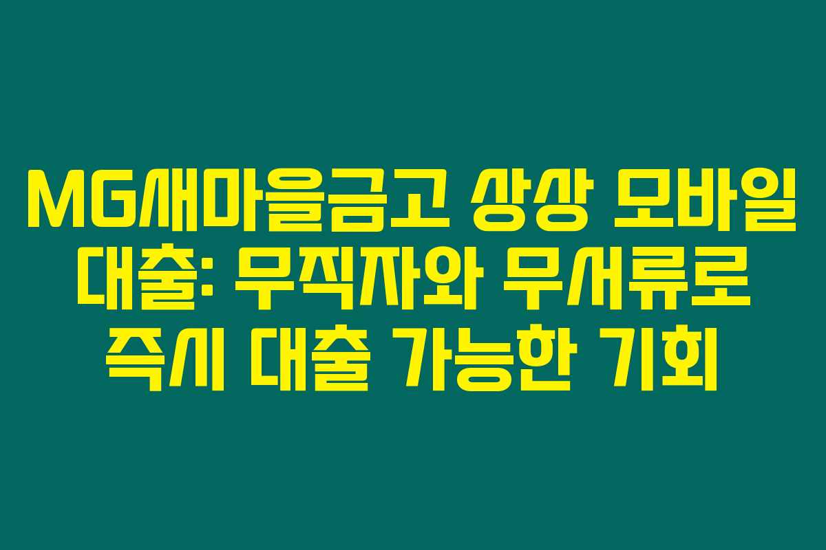제가 직접 알아본 바로는 MG새마을금고의 상상 모바일 대출은 1금융권에서 대출을 받기 어려운 분들이 빠르고 간편하게 이용할 수 있는 대출 상품이에요. 소득이나 재직증빙 없이 모바일로 무서류 대출이 가능하다는 점이 큰 매력이라고 할 수 있습니다. 아래를 읽어보시면 이 대출 상품의 자격 조건과 세부 정보를 이해하고 필요한 경우 활용하실 수 있을 거예요.