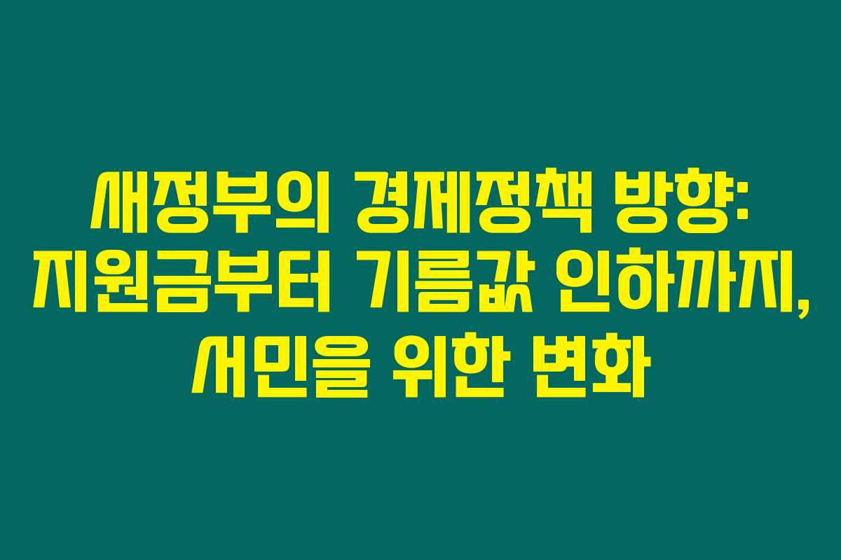 제가 직접 알아본 바로는, 새정부의 경제정책은 서민들의 삶의 질을 높이고 경제적 안정을 목표로 하고 있어요. 지원금과 수당, 기름값 인하 등 다양한 정책들이 시행될 예정인데, 이러한 변화가 실제로 얼마나 효과가 있을지는 지켜보아야 할 일이랍니다. 아래를 읽어보시면, 각 정책의 세부 사항과 그 영향을 자세히 알아보실 수 있을 거예요.