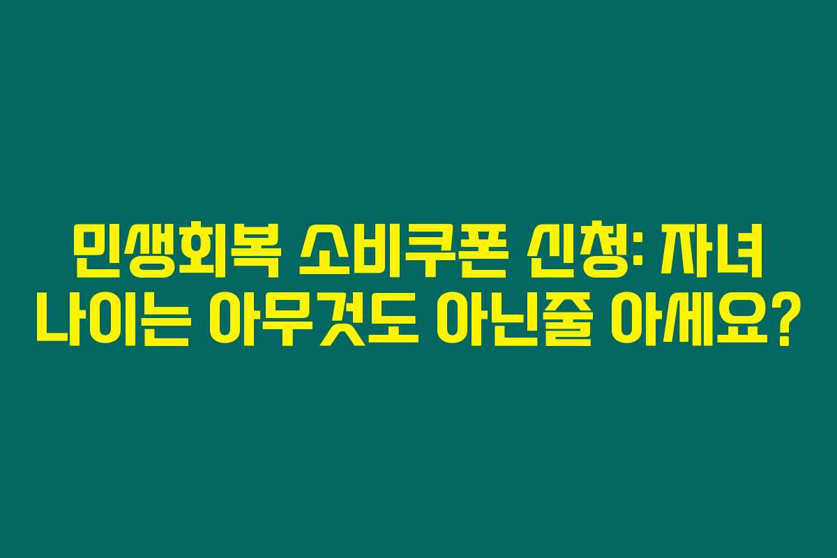 제가 직접 알아본 바로는, 민생회복 소비쿠폰이 전국민에게 지급된다는 발표 이후 많은 관심과 기대가 쏠리고 있어요. 이 쿠폰은 최대 52만원에 달하는 지원금으로, 당연히 많은 가정의 주머니를 든든하게 채워줄 좋은 소식이죠. 하지만 다들 주의해야 할 점도 많다는 사실, 아시나요? 특히 자녀가 있는 가정에서는 “자녀의 나이에 따라 지원금이 달라지나요?”라는 궁금증도 함께 떠오르더라고요. 아래를 읽어보시면 소비쿠폰의 신청 절차와 지급 방식, 그리고 자녀 나이가 지급 기준에 미치는 영향에 대해 자세히 알 수 있습니다.