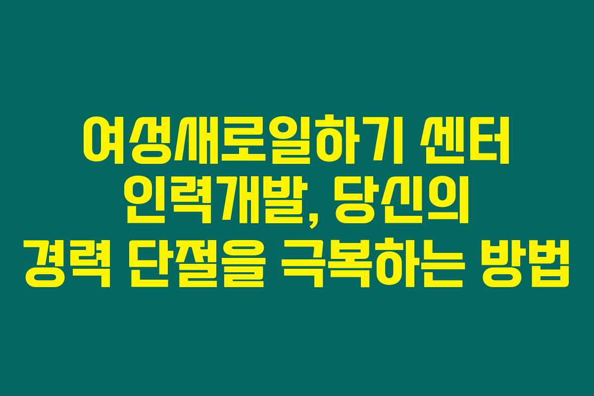 여성새로일하기 센터 인력개발에 대해 알아보기