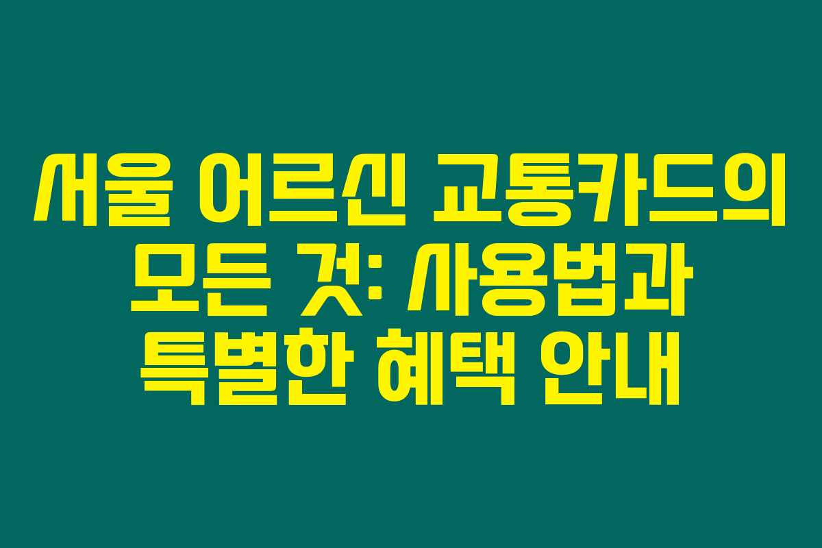 서울 어르신 교통카드의 모든 것: 사용법과 특별한 혜택 안내