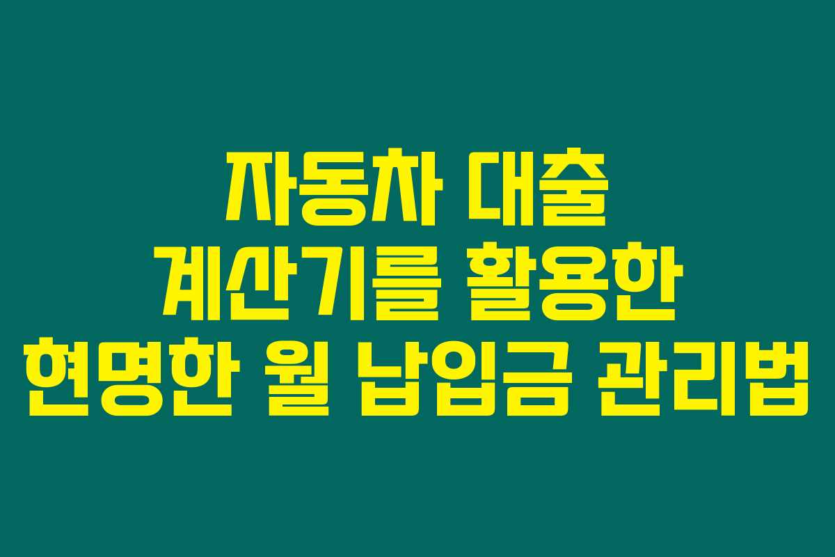 제가 직접 경험해본 결과로는, 자동차를 구매할 때 대출을 고려하는 많은 분들이 효율적으로 자금을 관리하기 위해 자동차 대출 계산기를 활용하고 있습니다. 아래를 읽어보시면, 자동차 대출 계산기의 사용법과 월 납입금 산정 방법을 통해 진정으로 스마트한 소비를 할 수 있는 방법에 대해 알아보실 수 있습니다.
