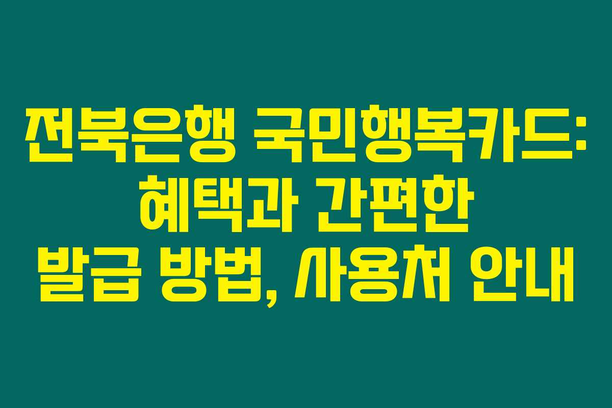 전북은행 국민행복카드를 발급받는 과정은 간단합니다. 영업점을 방문하거나 온라인을 통해 신청할 수 있습니다. 카드 신청 시에는 아래와 같은 서류를 제출해야 해요.