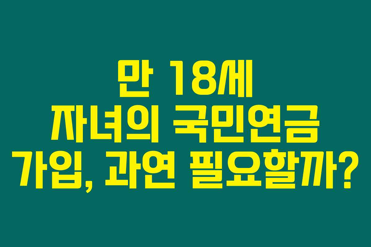 제가 직접 경험해본 결과로는, 자녀가 만 18세가 되었을 때 국민연금 가입 여부는 중요한 결정이 될 수 있습니다. 많은 부모님들이 고민하는 사안으로, 가입을 통해 자녀의 노후를 철저히 준비할 수 있는 기회이기도 하거든요. 아래를 읽어보시면, 국민연금 가입의 필요성과 장점, 그리고 주의할 점에 대해 상세히 알아볼 수 있을 거예요.