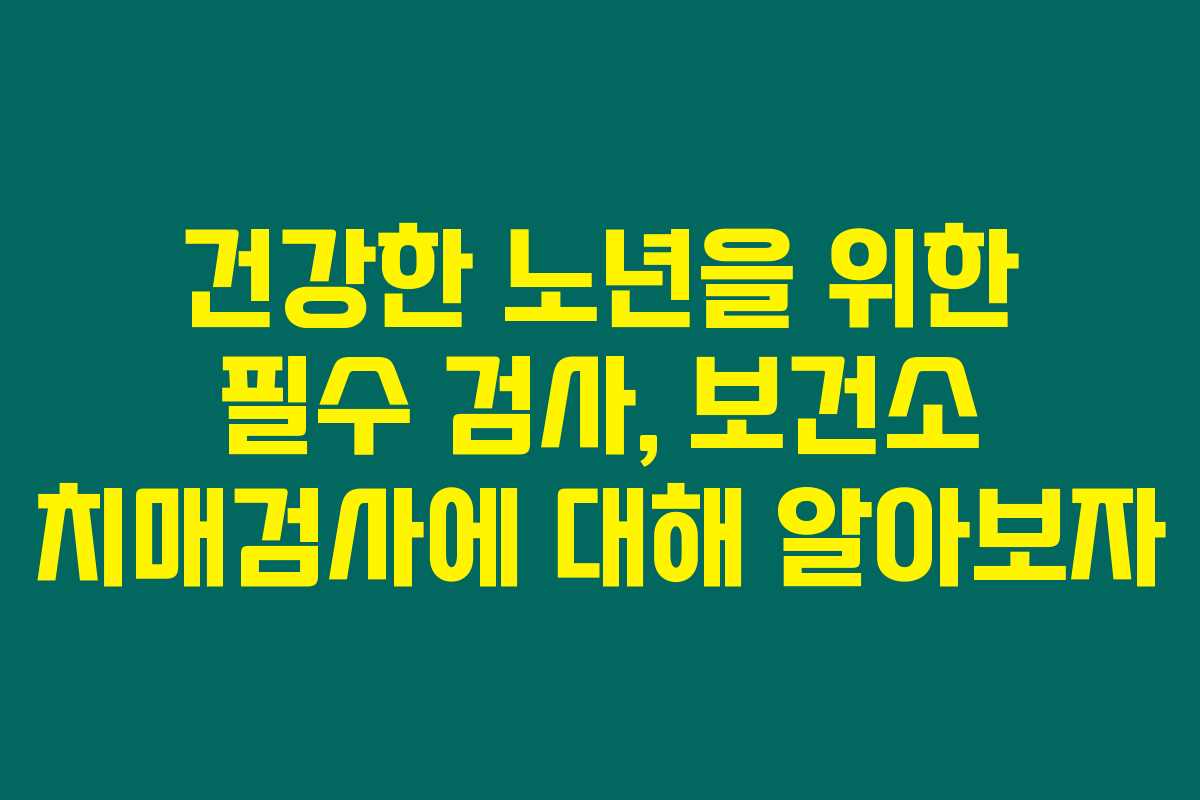 제가 직접 경험해본 결과로는, 치매는 고령층에서 매우 흔하게 발생하는 질환이고, 초기에 발견하여 관리하는 것이 무엇보다 중요하다는 것을 절실히 느꼈습니다. 보건소에서 제공하는 무료 치매검사는 치매를 조기에 진단할 수 있는 효과적인 방법으로 만 60세 이상의 국민이라면 누구나 이를 이용할 수 있어요. 아래를 읽어보시면 보건소 치매검사의 과정, 종류, 비용 지원, 예약 방법에 대해 자세히 알아보실 수 있을 거예요.