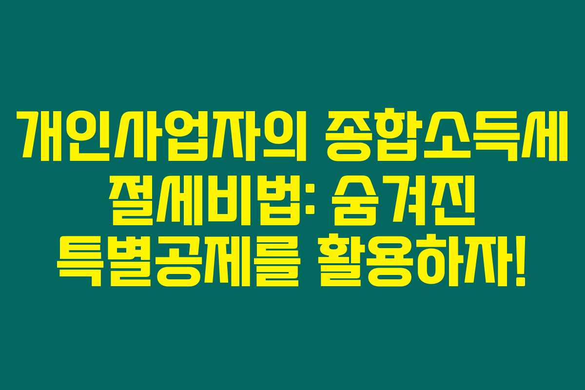 개인사업자의 종합소득세 절세비법: 숨겨진 특별공제를 활용하자!