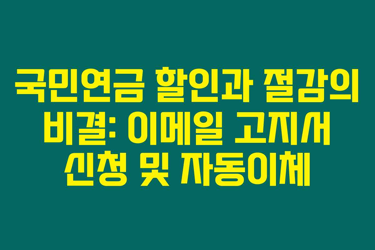 제가 직접 경험해본 결과로는 국민연금을 절감할 수 있는 가장 효과적인 방법은 이메일 고지서 신청과 자동이체입니다. 조그마한 변화로도 월납부금에서 430원의 할인 혜택을 누릴 수 있으니, 아래를 읽어보시면 그 방법을 쉽게 이해하실 수 있을 거예요.
