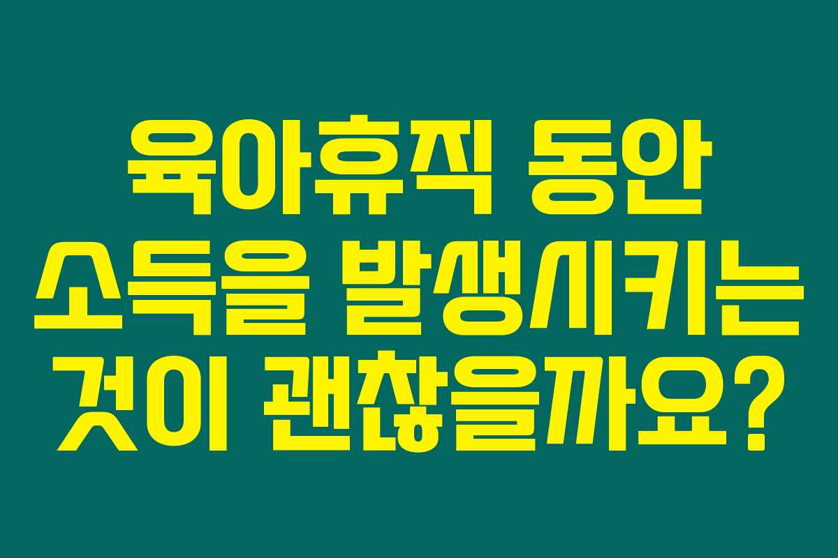 원칙적으로 육아휴직 중 근무는 허용되지 않으니 신중히 결정해야 해요.