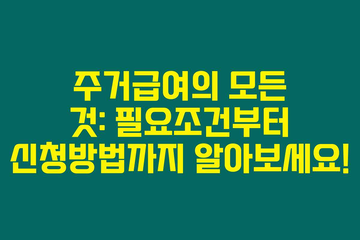 주거급여의 모든 것: 필요조건부터 신청방법까지 알아보세요!