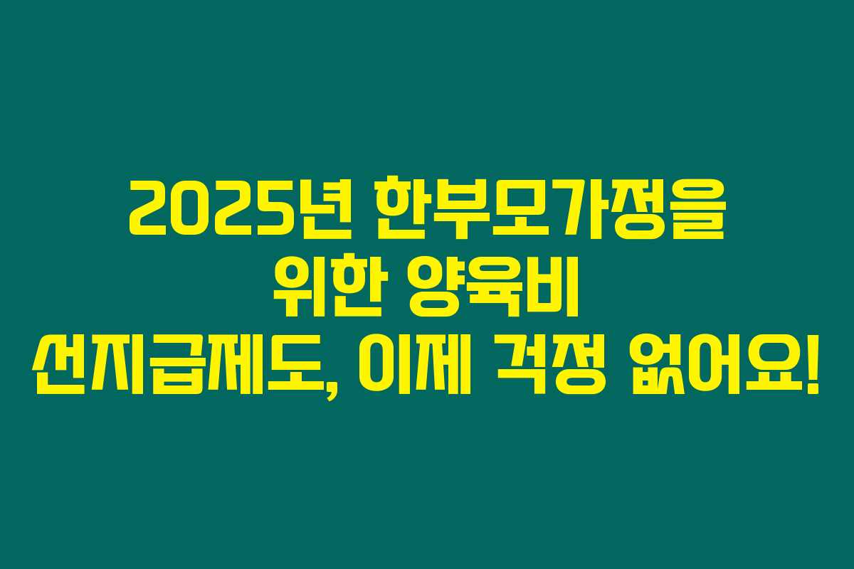 2025년부터 시행된 양육비 선지급제도는 한부모 가정의 양육비 문제를 해결하기 위한 혁신적인 제도예요. 자녀의 권리를 보호하고 경제적 부담을 덜어줄 수 있는 이 제도의 신청 조건과 방법을 아래를 읽어보시면 자세히 알아보실 수 있습니다.