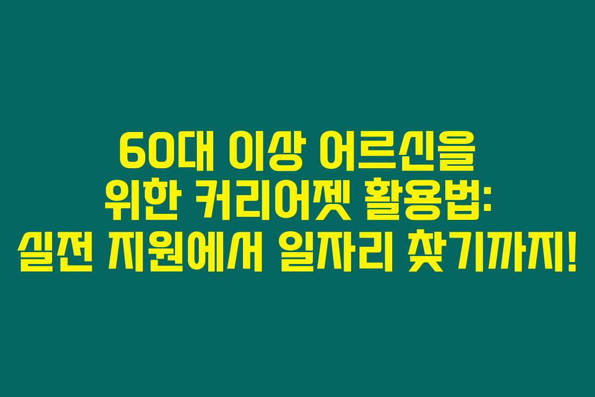 마지막으로, 커리어젯은 다양한 구직 사이트 정보를 한 번에 제공하는 편리한 플랫폼이에요. 시니어 알바를 찾고자 하는 분들께 유용한 전략을 공유했으니, 실제로 활용해보시길 바랍니다! 60세, 70세 이후에도 당신에게 맞는 일자리를 찾을 수 있어요. 함께 힘내서 좋은 결과 이루어 보아요!