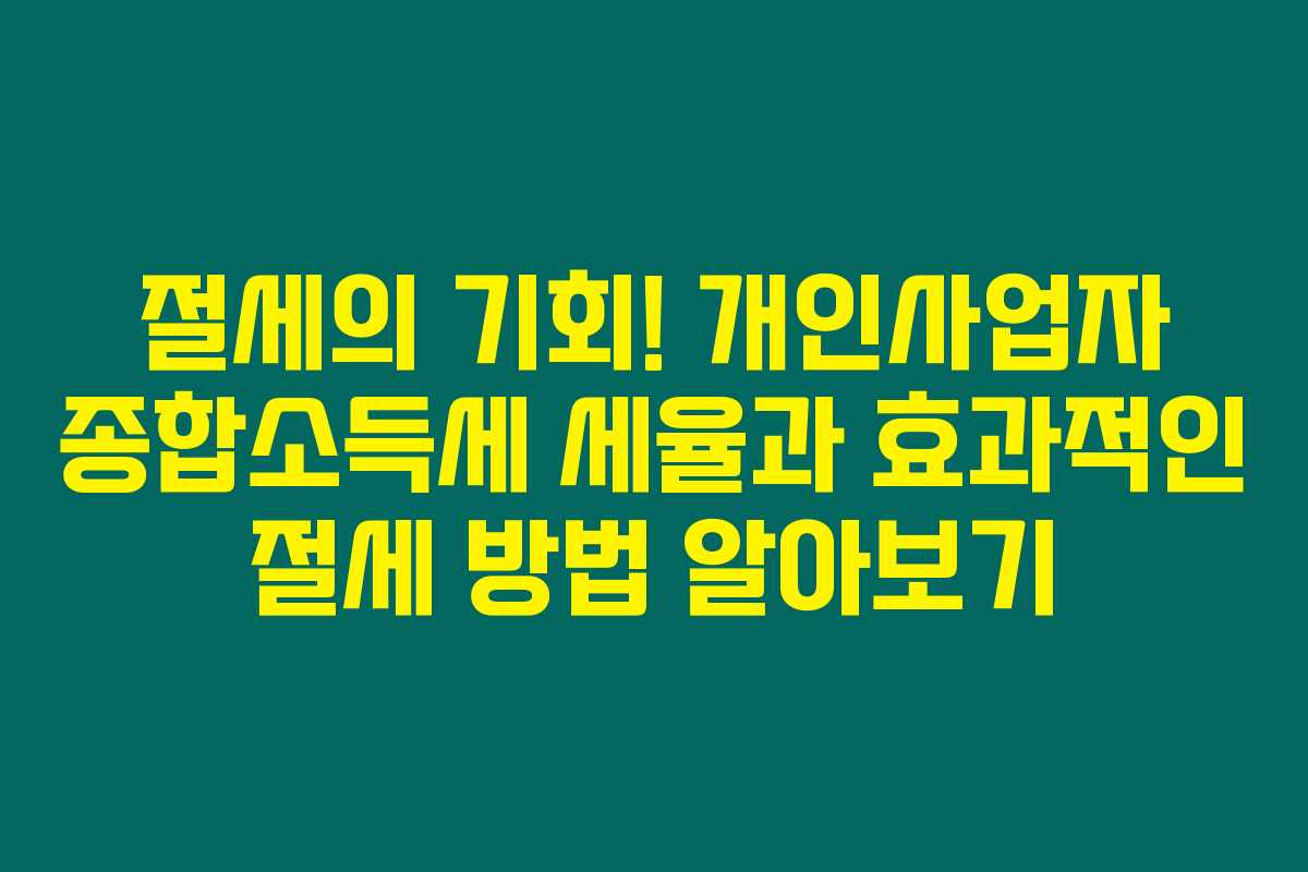 절세의 기회! 개인사업자 종합소득세 세율과 효과적인 절세 방법 알아보기
