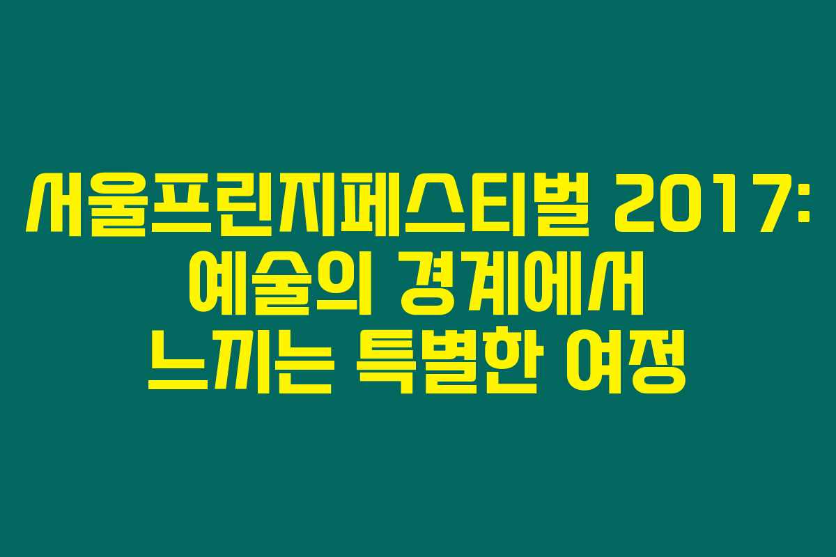 여름은 축제와 함께 오는 것이지요. 제가 경험한 서울프린지페스티벌 2017은 특히나 여행과 탐험의 경계를 넘나드는 특별한 기분을 안겨주었어요. 축제 기간 동안 다양한 공연과 전시들이 눈을 사로잡았고, 낯선 거리와 익숙한 공간이 어우러져 진정한 여행의 의미를 되새기게 했답니다. 아래를 읽어보시면 그 특별한 순간들을 함께 느낄 수 있을 거예요.
