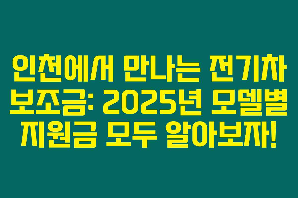 인천에서 만나는 전기차 보조금: 2025년 모델별 지원금 모두 알아보자!
