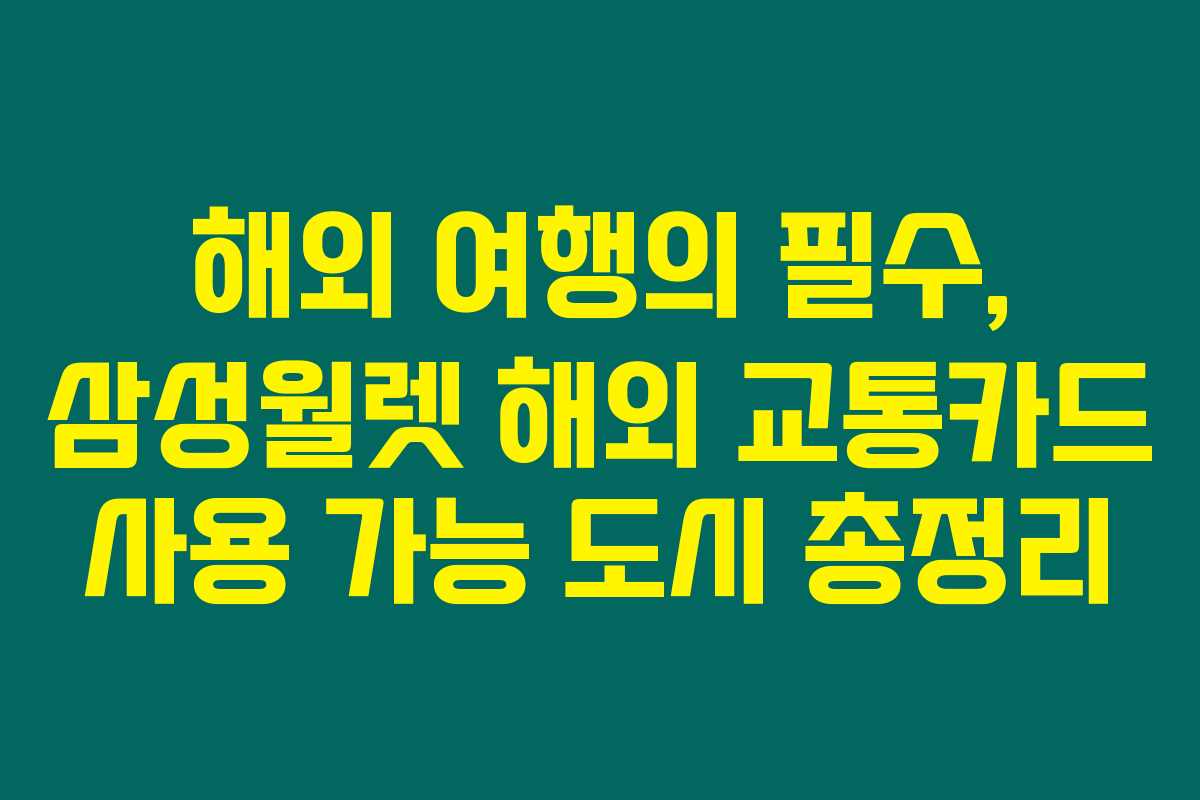 여행 준비를 하시면서 삼성월렛 해외 교통카드 사용 가능 도시를 체크해보고 싶다면, 아래를 읽어보시면 큰 도움이 될 거예요. 각 도시에서 어떤 교통수단을 사용할 수 있는지 미리 알아보고 즉석에서 겪을 수 있는 불편함을 최소화해 보세요!