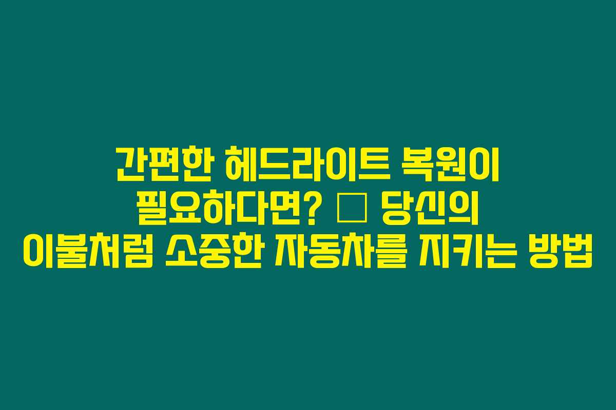 여러분, 자동차의 헤드라이트가 흐릿해져서 안전 운전에 불편하시지 않나요? 헤드라이트 복원은 생각보다 간단하고 경제적일 수 있어요! 아래를 읽어보시면 간편하게 헤드라이트를 복원할 수 있는 꿀팁을 전수 받을 수 있어요.