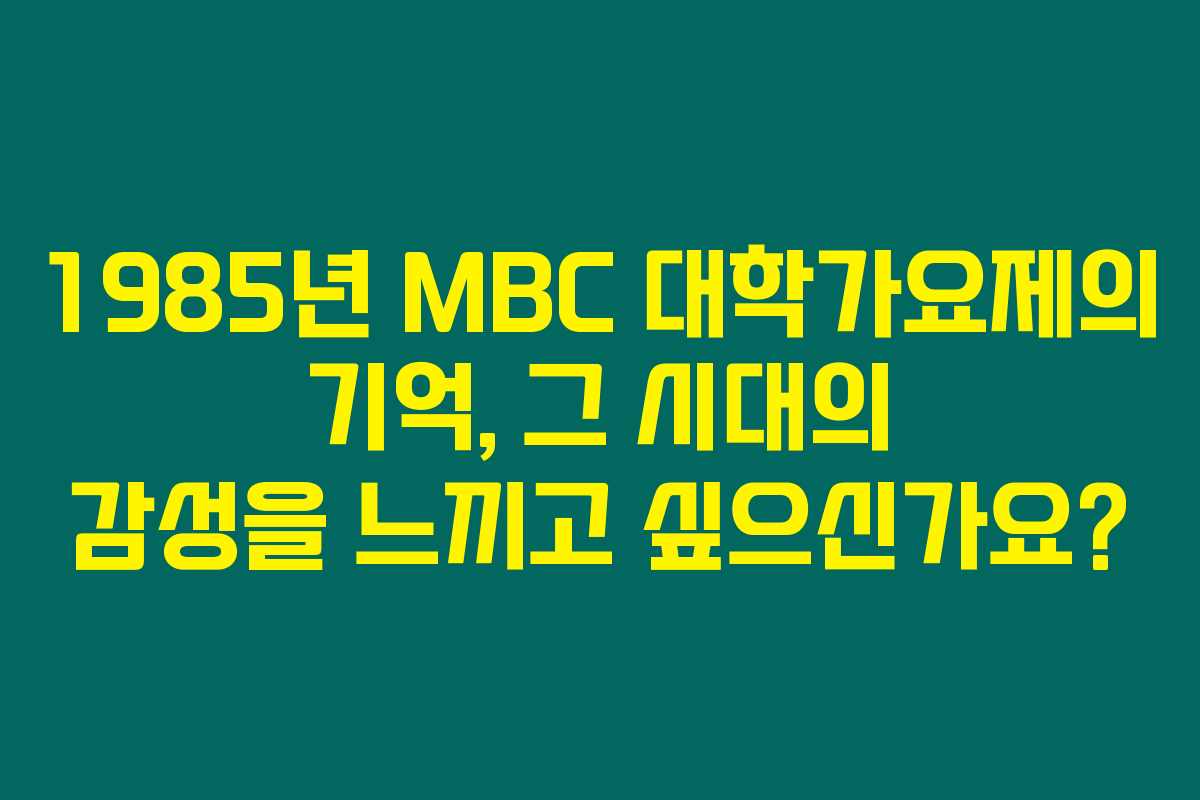 1985년 MBC 대학가요제의 기억, 그 시대의 감성을 느끼고 싶으신가요?
