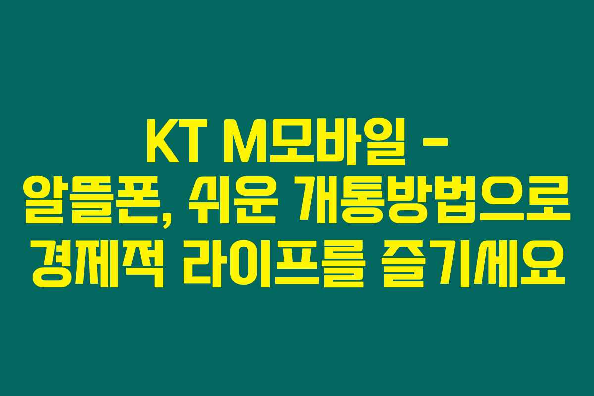많은 이들이 통신비 절약을 위해 알뜰폰을 선택하고 있습니다. 특히 KT M모바일은 저렴하고 가성비 좋은 요금제로 많은 인기를 얻고 있는 것 알고 계신가요? KT M모바일을 통해 알뜰폰을 개통하려고 검색 중이라면, 아래를 읽어보시면 쉽게 개통하는 방법과 더불어 쏠쏠한 팁까지 알려드릴게요!