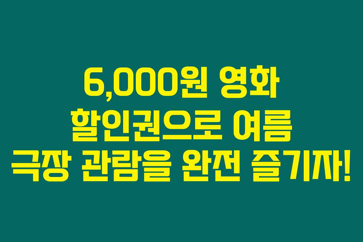 영화관에서 시작하는 시원한 여름 휴가를 꿈꾸고 계신가요? 영화 한 편이 단돈 1,000원으로 가능하다는 소식이 들려왔어요. 정부의 지원으로 6,000원 영화 할인권이 배포된다고 해요. 어떻게 하면 이 행운을 잡을 수 있을까요? 아래를 읽어보시면, 할인권 사용법과 예정된 이벤트에 대한 모든 정보를 제공하니 꼭 확인해 보세요!