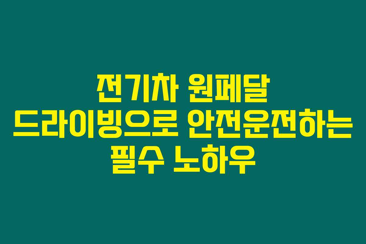 전기차를 안전하게 운전하고 싶다면 원페달 드라이빙을 알아두셔야 합니다. 전기차 운전이 처음이거나 원페달 드라이빙에 적응하지 못한 분들에게는 유용한 정보가 될 거예요. 원페달 드라이빙은 단순히 운전의 편리함을 넘어, 안전한 주행을 위한 중요한 기술입니다. 아래를 읽어보시면 원페달 드라이빙의 모든 것과 안전 운전 노하우를 확인할 수 있습니다.