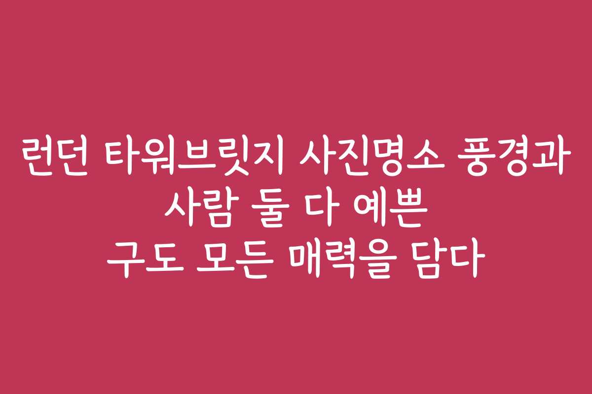 런던 타워브릿지를 사진명소로 찾는 분들, 어떤 구도를 잡아야 할지 고민되시나요? 풍경과 사람을 함께 담아내는 건 쉽지 않죠. 하지만 모든 매력을 담아낼 수 있는 팁들이 있습니다. 런던 타워브릿지 사진명소 풍경과 사람 둘 다 예쁜 구도 모든 매력을 담다는 이 글에서 제대로 알아보세요!