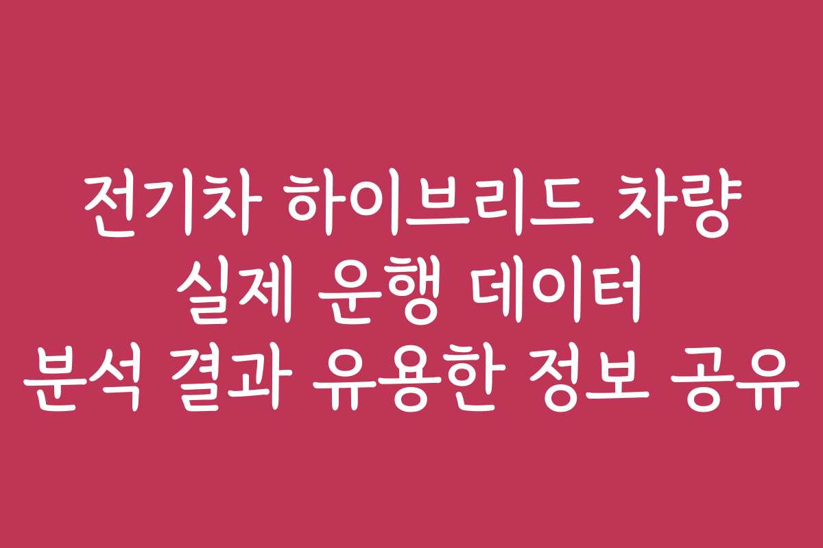 전기차 하이브리드 차량 실제 운행 데이터 분석 결과 유용한 정보 공유