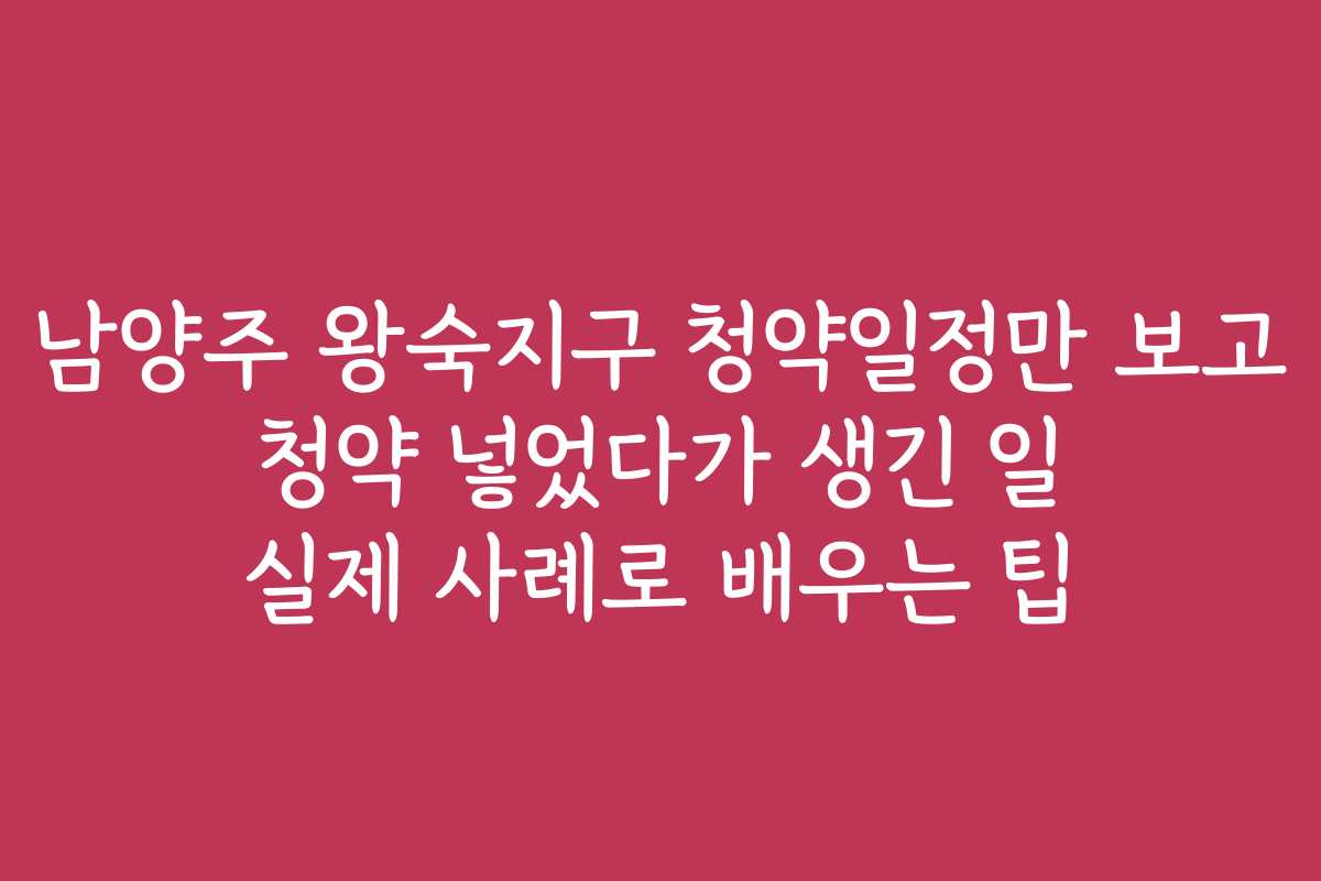 남양주 왕숙지구 청약일정만 보고 청약 넣었다가 생긴 일 실제 사례로 배우는 팁