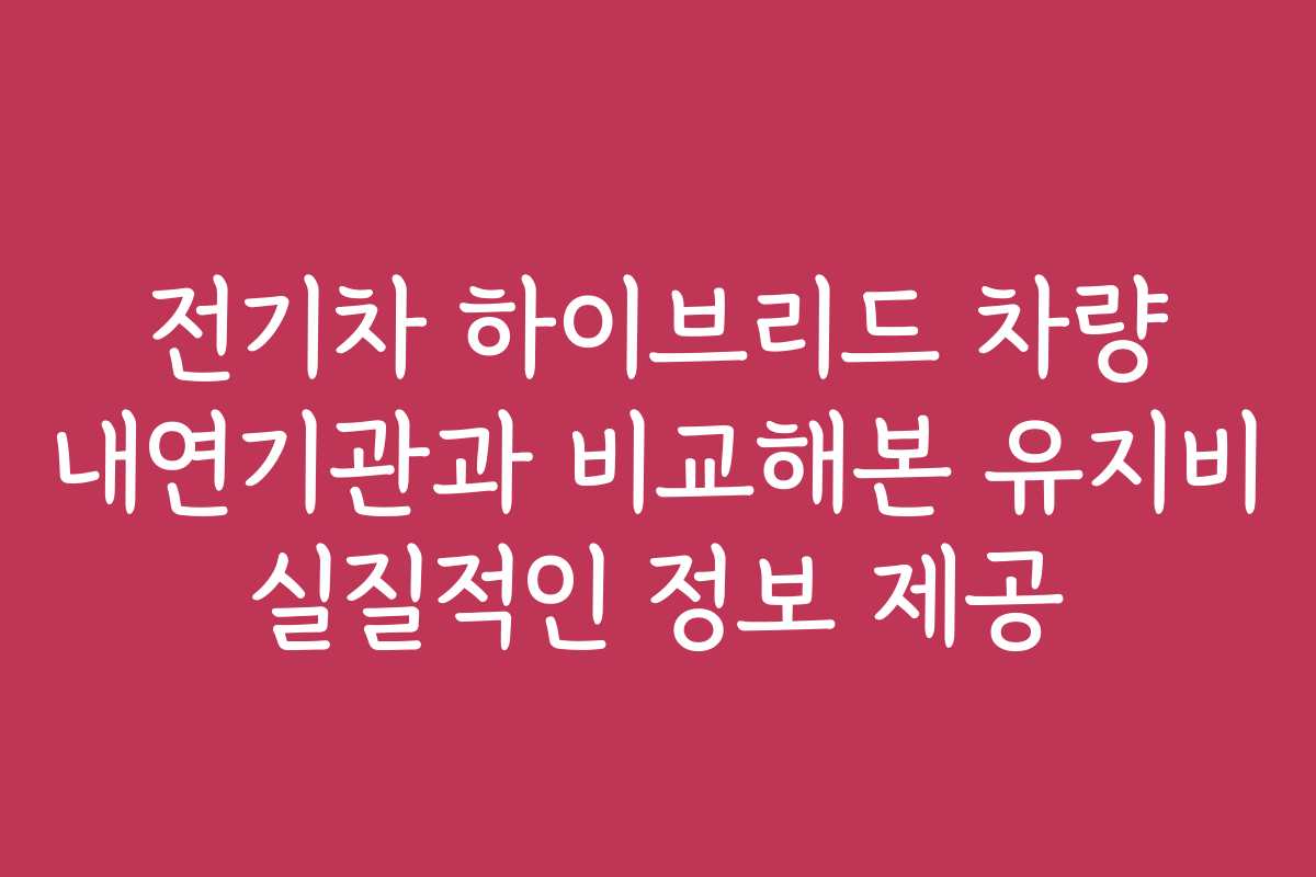 전기차 하이브리드 차량 내연기관과 비교해본 유지비 실질적인 정보 제공