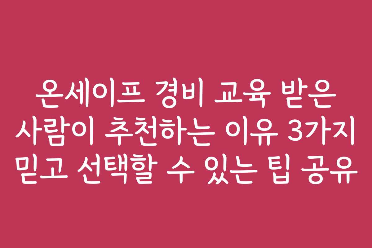 온세이프 경비 교육 받은 사람이 추천하는 이유 3가지 믿고 선택할 수 있는 팁 공유