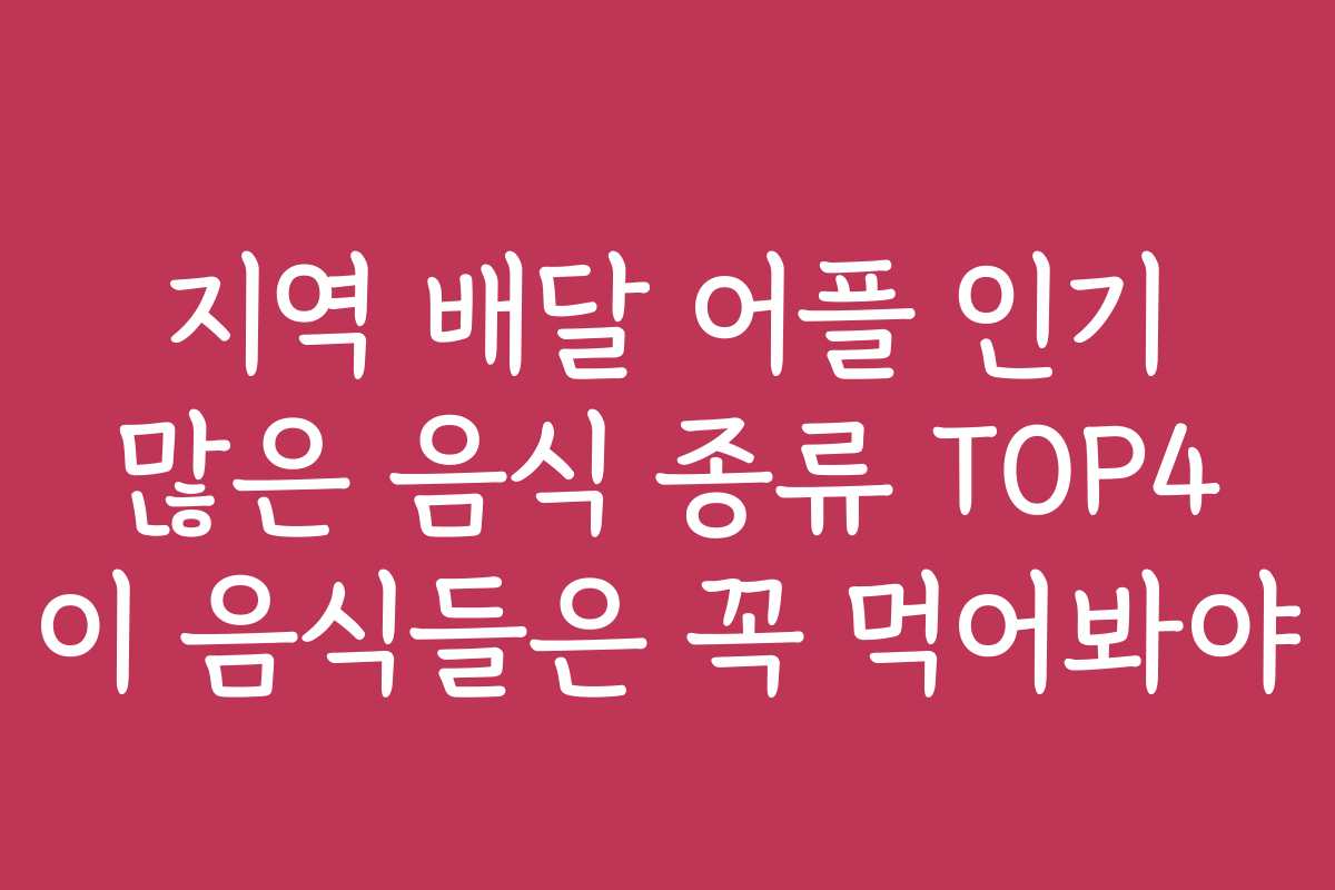 지역 배달 어플 인기 많은 음식 종류 TOP4