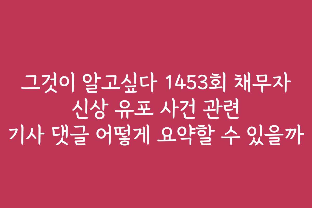 많은 분들이 최근 논란이 되고 있는 채무자 신상 유포 사건에 대한 의견을 가지고 있습니다. 이 사건은 개인의 프라이버시와 관련된 중요한 문제를 다루고 있습니다. 이 글에서는 ‘그것이 알고싶다 1453회 채무자 신상 유포 사건 관련 기사 댓글 어떻게 요약할 수 있을까’에 대한 다양한 의견을 요약하고, 사건의 중요성을 짚어보겠습니다.