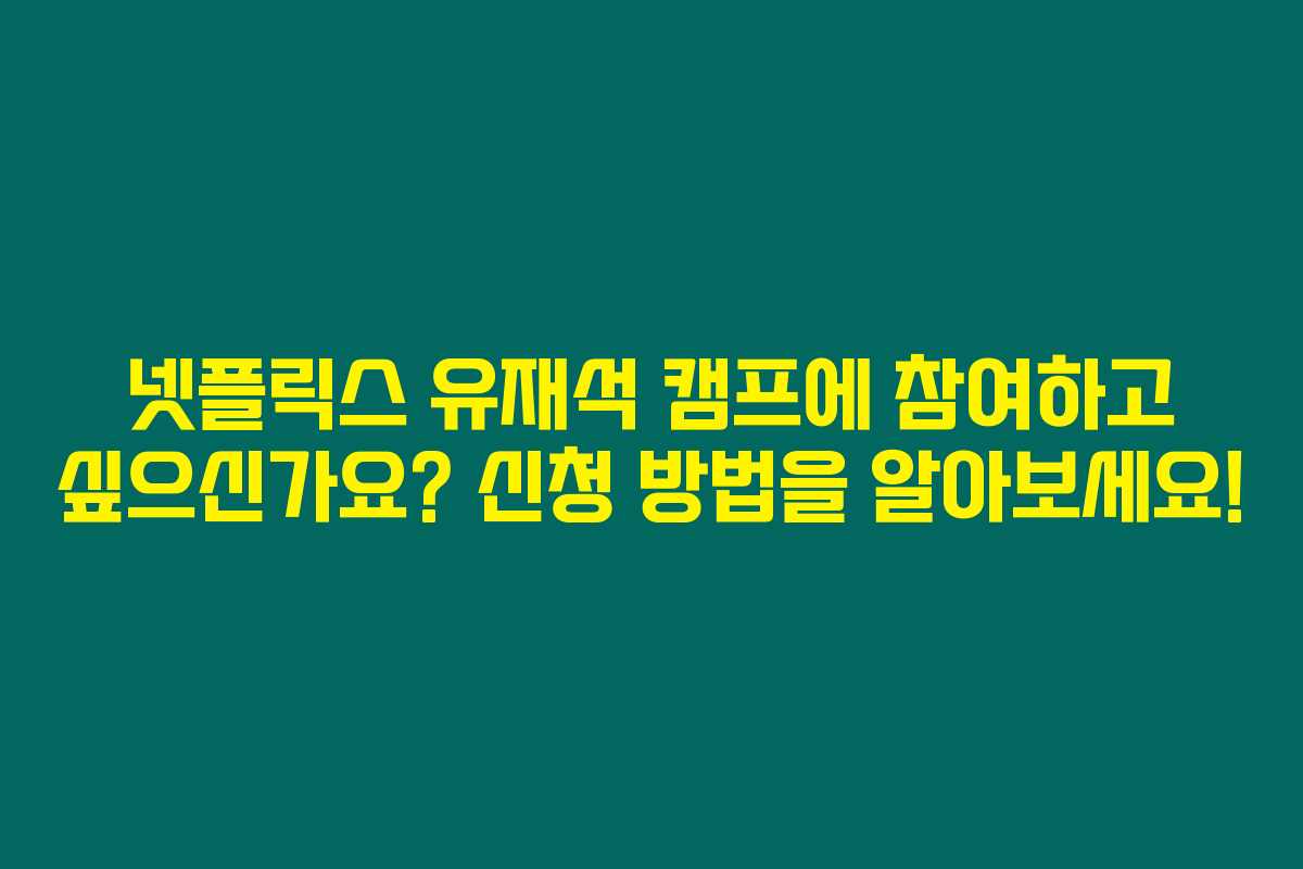 넷플릭스 유재석 캠프 신청 방법이 이렇게 간단하답니다. 유재석과 함께 특별한 여름 추억을 만들고 싶다면, 꼭 신청해 보세요. 소중한 경험이 될 거예요!