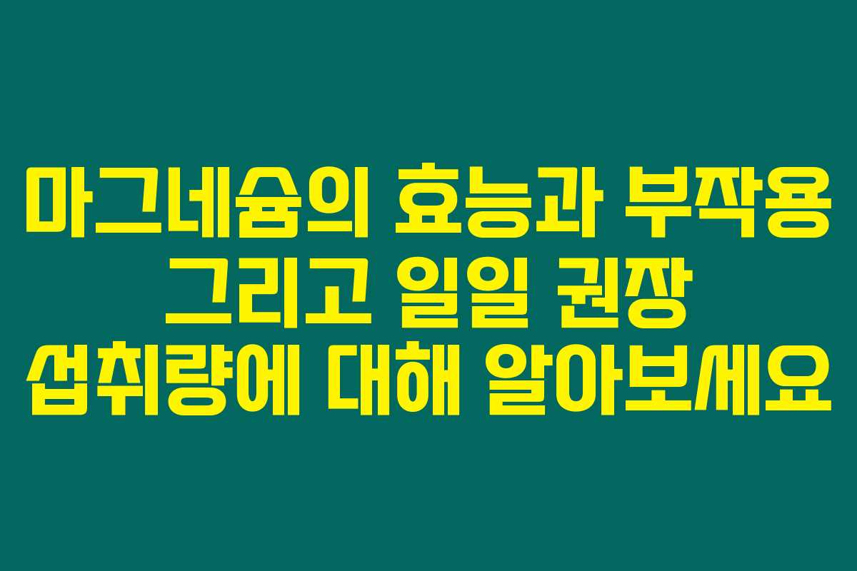 마그네슘의 효능과 부작용 그리고 일일 권장 섭취량에 대해 알아보세요