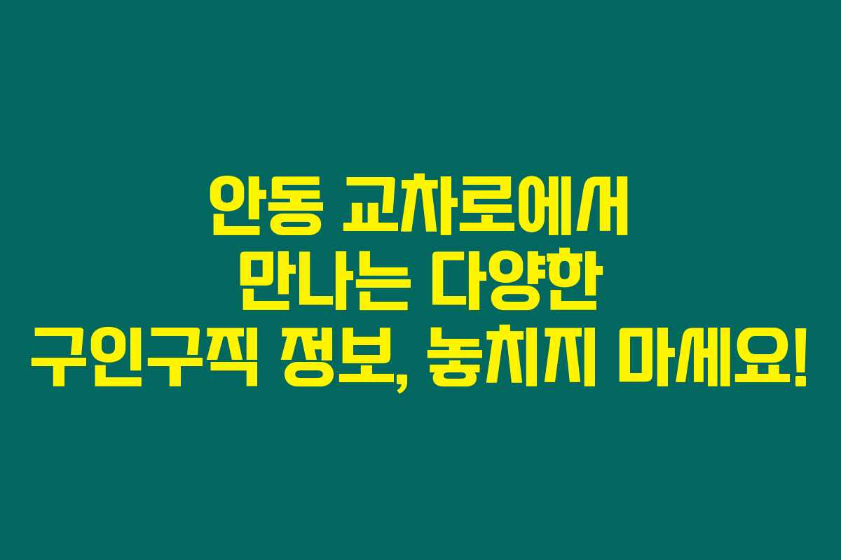 안동 교차로와 안동 벼룩시장에서도 구인구직 정보를 확인할 수 있으며, 안동시청 구인구직란도 유용해요.