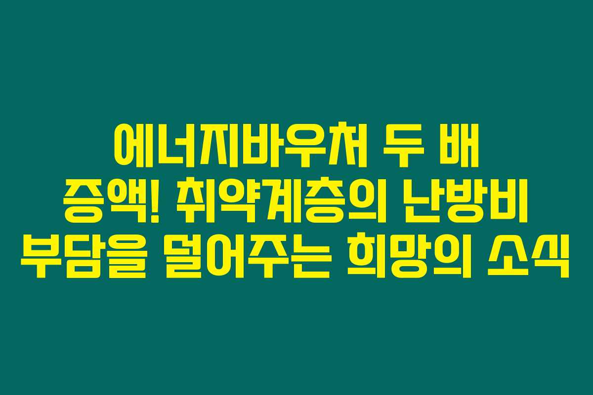 겨울철 난방비로 고민하는 분들이 많다면 이제 그 고민을 한층 덜어줄 좋은 소식이 있어요. 바로 에너지바우처 지원금이 두 배로 증액되었다는 사실인데요. 이번 변화를 통해 취약계층의 난방비 부담이 경감될 수 있다고 하니, 그 내용을 아래에서 확인해보세요.