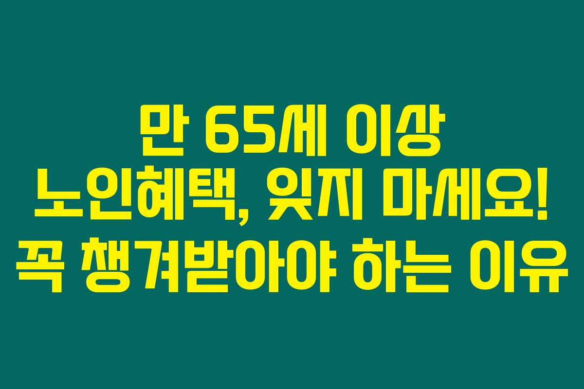 만 65세 이상 노인혜택, 잊지 마세요! 꼭 챙겨받아야 하는 이유