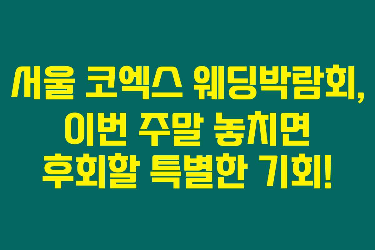 서울 코엑스 웨딩박람회, 이번 주말 놓치면 후회할 특별한 기회!