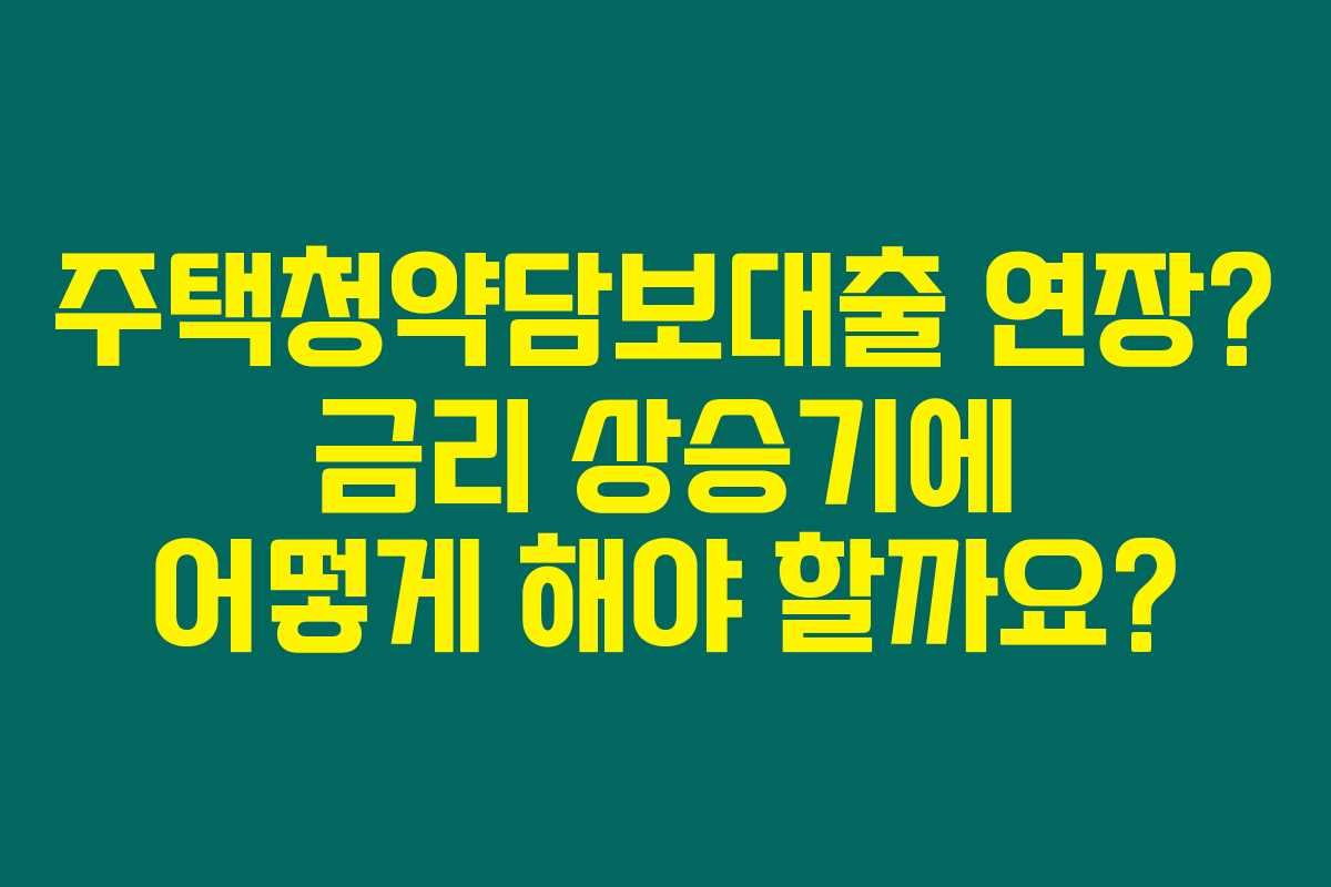 주택청약담보대출 연장을 고민하시고 계신가요? 최근 금리가 상승하면서 선택의 폭이 좁아졌습니다. 이 글에서는 주택청약담보대출을 연장해야 할지 여부와 함께, 금리 상승기의 현명한 대처 방법에 대해 심도 있는 내용을 다루고 있습니다.