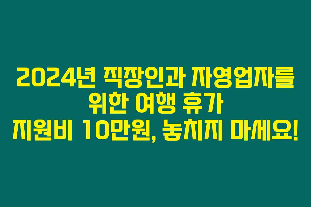 2024년부터 직장인과 자영업자를 위한 정부의 여행 휴가 지원비가 제공됩니다. 만약 올해 여행 계획이 있으신 분이라면, 이 지원금을 꼭 활용해야 해요! 여행을 통해 소중한 추억을 쌓고 경제적으로도 도움이 되니까요. 아래를 읽어보시면, 여행 휴가비 신청 방법과 활용 방법에 대해 자세히 알려드릴게요.