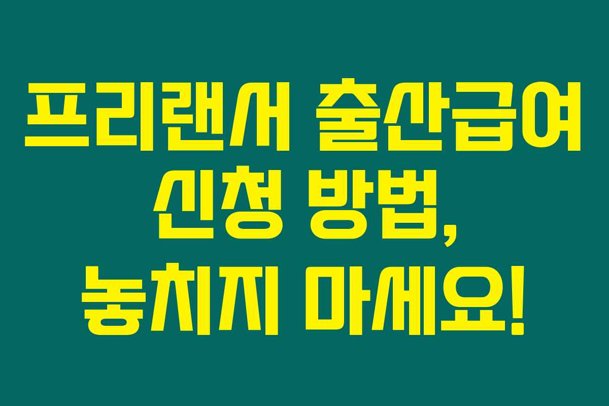 프리랜서 출산급여 신청 방법, 놓치지 마세요!