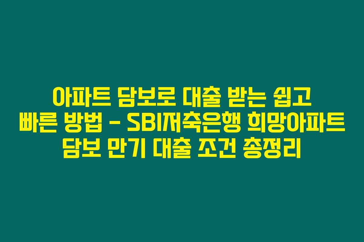 1. SBI 저축은행 희망아파트 담보만기 대출이란?