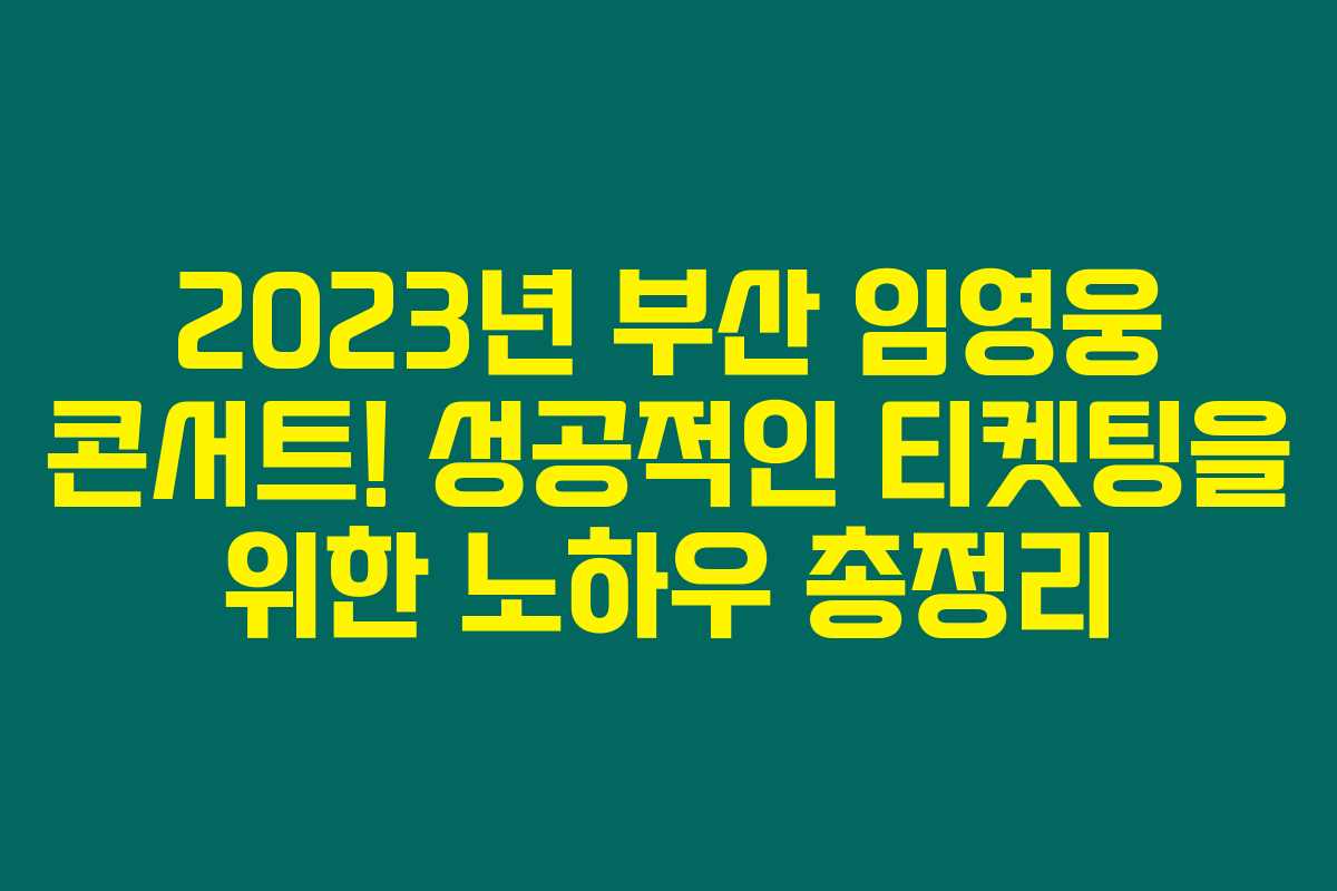 부산에서 오는 임영웅 콘서트 티켓을 고민 중이라면 주목하세요! 임영웅의 콘서트는 단순한 공연이 아니라 많은 사람들에게 감동을 주는 특별한 경험이에요. 특히 이번 부산 콘서트는 더욱 많은 팬들이 모여들어 티켓팅이 굉장히 경쟁이 치열할 것이니, 아래를 읽어보시면 빠르고 성공적인 예매를 하는 방법을 알 수 있어요.