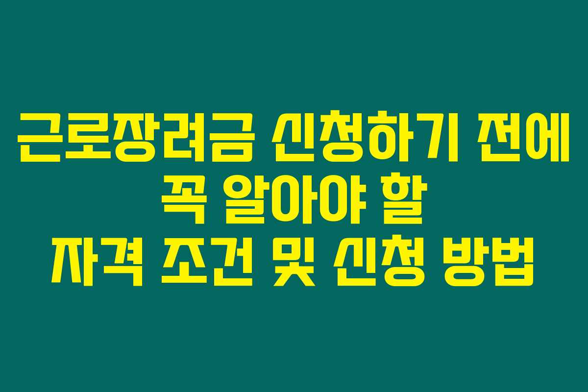 근로장려금을 받기 위해서는 몇 가지 조건을 충족해야 해요. 조건은 다음과 같아요.