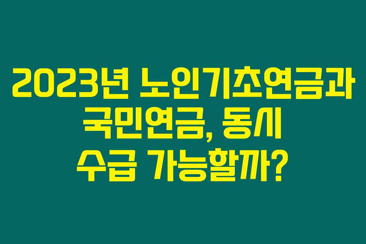 어르신들이 안정적인 생활을 위해 가장 궁금해하는 내용 중 하나가 바로 노인기초연금과 국민연금의 동시 수급 여부입니다. 과연 2023년 현재, 이 두 가지 연금을 동시에 받을 수 있을까요? 아래를 읽어보시면 필요한 정보와 신청 방법, 그리고 수령 금액에 대해 자세히 알아볼 수 있습니다.