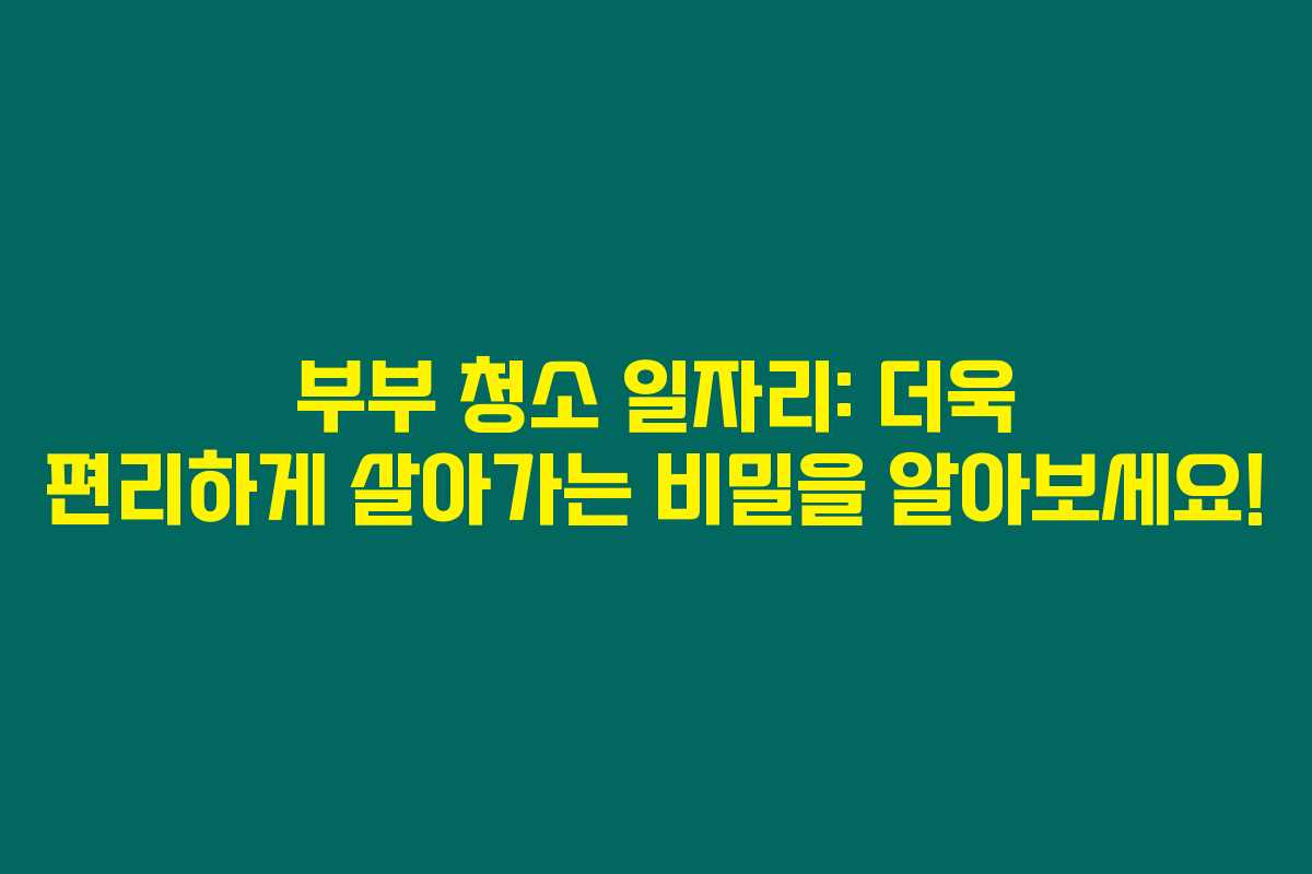 부부 청소 일자리: 더욱 편리하게 살아가는 비밀을 알아보세요!