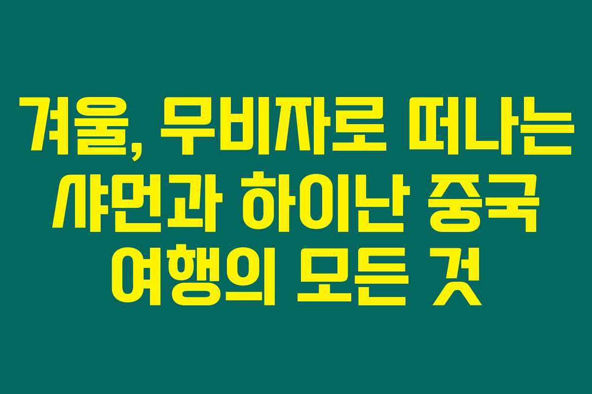 아름다운 겨울 여행지로 떠나는 무비자 관광은 이제 여러분의 차례입니다. 친구들과 함께 따뜻한 중국으로의 여행을 통해 새로운 추억을 만들어보세요!