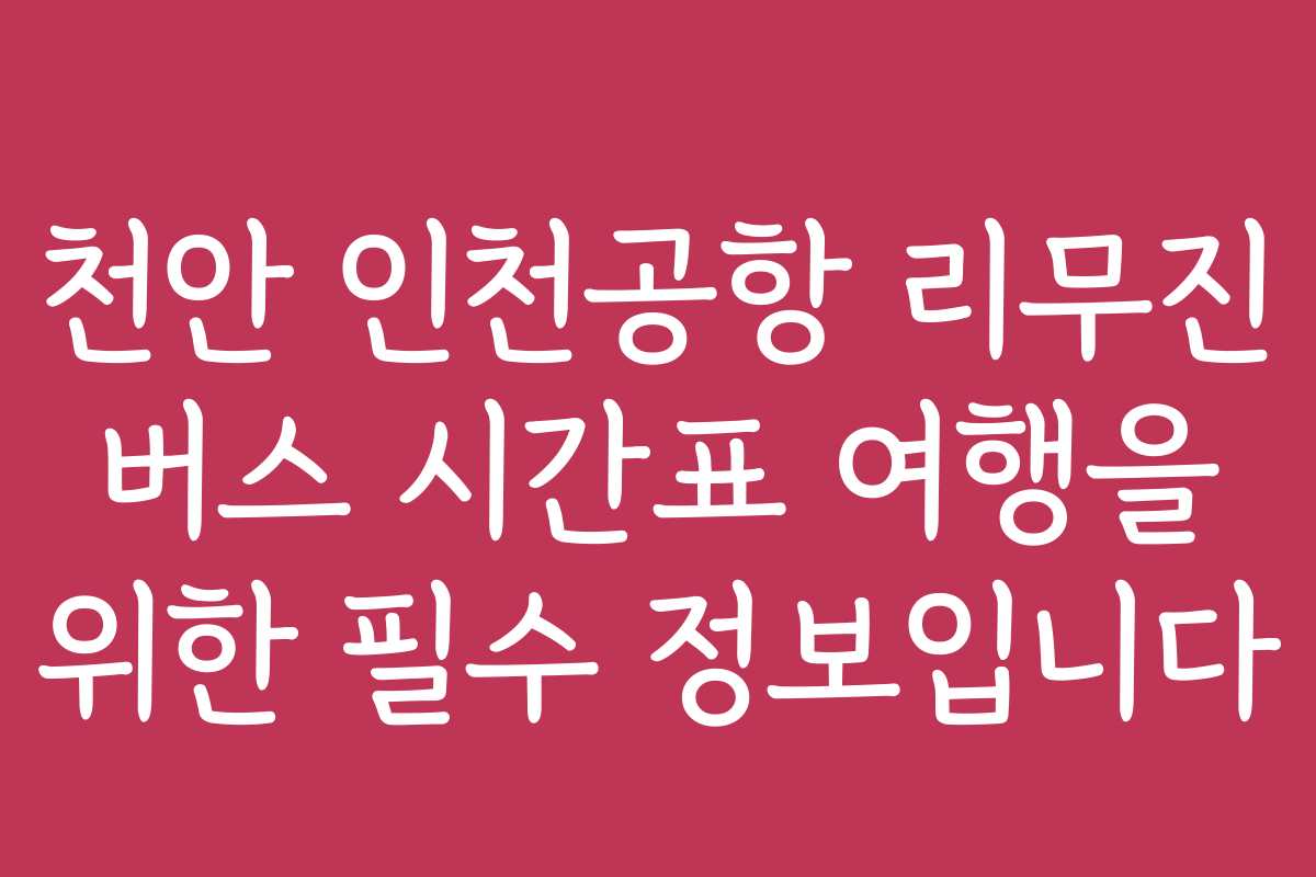 핵심 키워드: 천안 인천공항 리무진 버스, 시간표, 여행 정보, 소요 시간, 요금 정보, 예약 방법, 수하물 규정, 안전 수칙, 이용 팁, 할인 정보, 정류장 대기