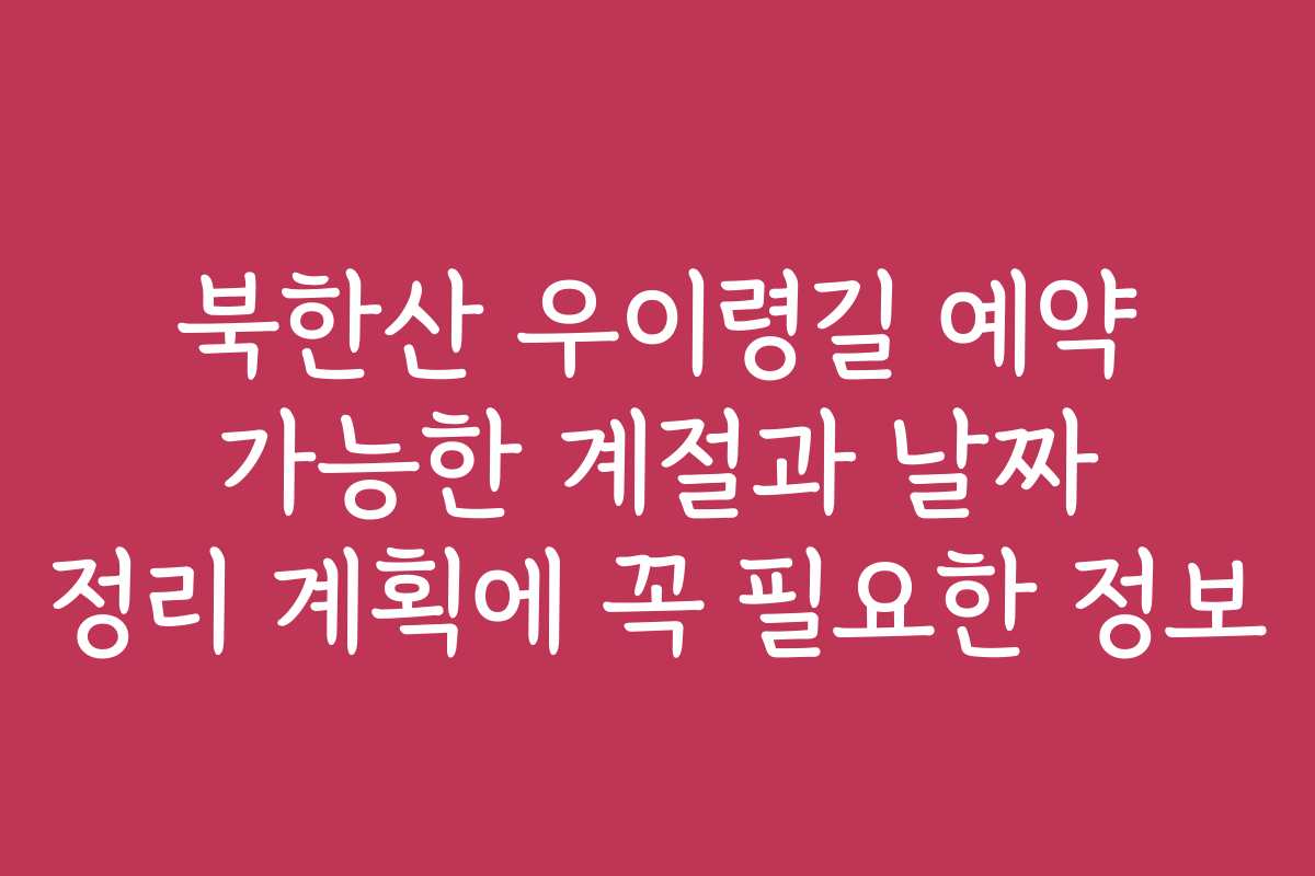 북한산은 서울 근교에서 자연을 만끽하며 힐링할 수 있는 명소입니다. 특히 우이령길은 그늘이 많아 여름에도 산행하기 좋은 코스입니다. 봄에는 화사한 꽃들이 만발하고, 가을에는 단풍이 절경을 이뤄 계절마다 다른 매력을 느낄 수 있습니다. 그러나 우이령길을 방문하기 위해서는 사전에 예약을 해야 하므로, 예약 가능한 계절과 날짜를 잘 이해하는 것이 중요합니다.