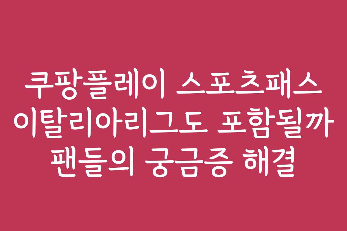 쿠팡플레이 스포츠패스 이탈리아리그도 포함될까 팬들의 궁금증 해결
